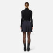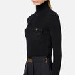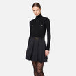 Elisabetta Franchi Miniabito in viscosa e seta a costine a maniche lunghe con collo alto e tasche con ricamo logo rifinite da bottoni in metallo dorato. Il punto vita è enfatizzato da una cintura in elastico con fibbia in metallo dorato che sovrasta la gonna a pieghe in nylon.
